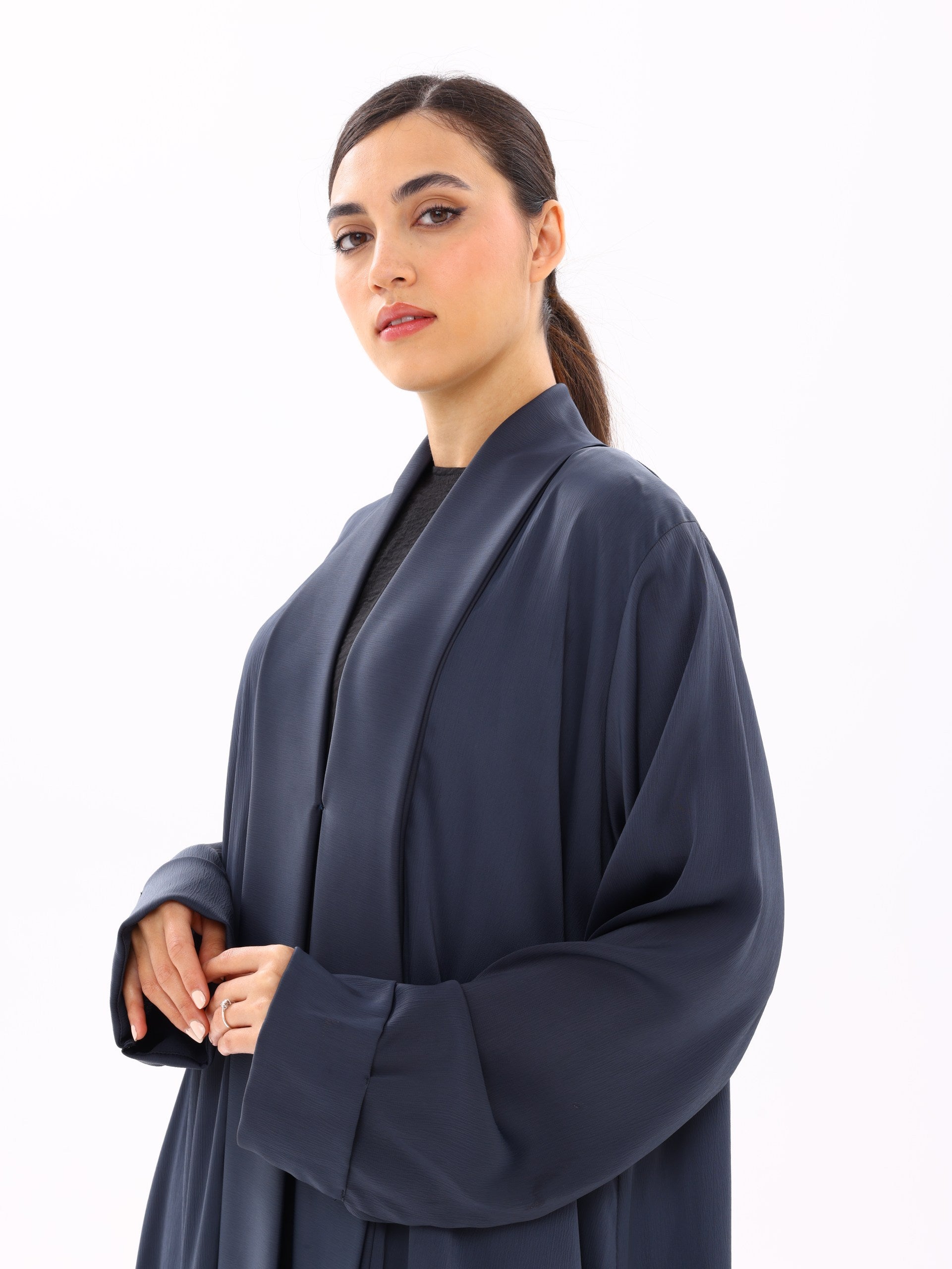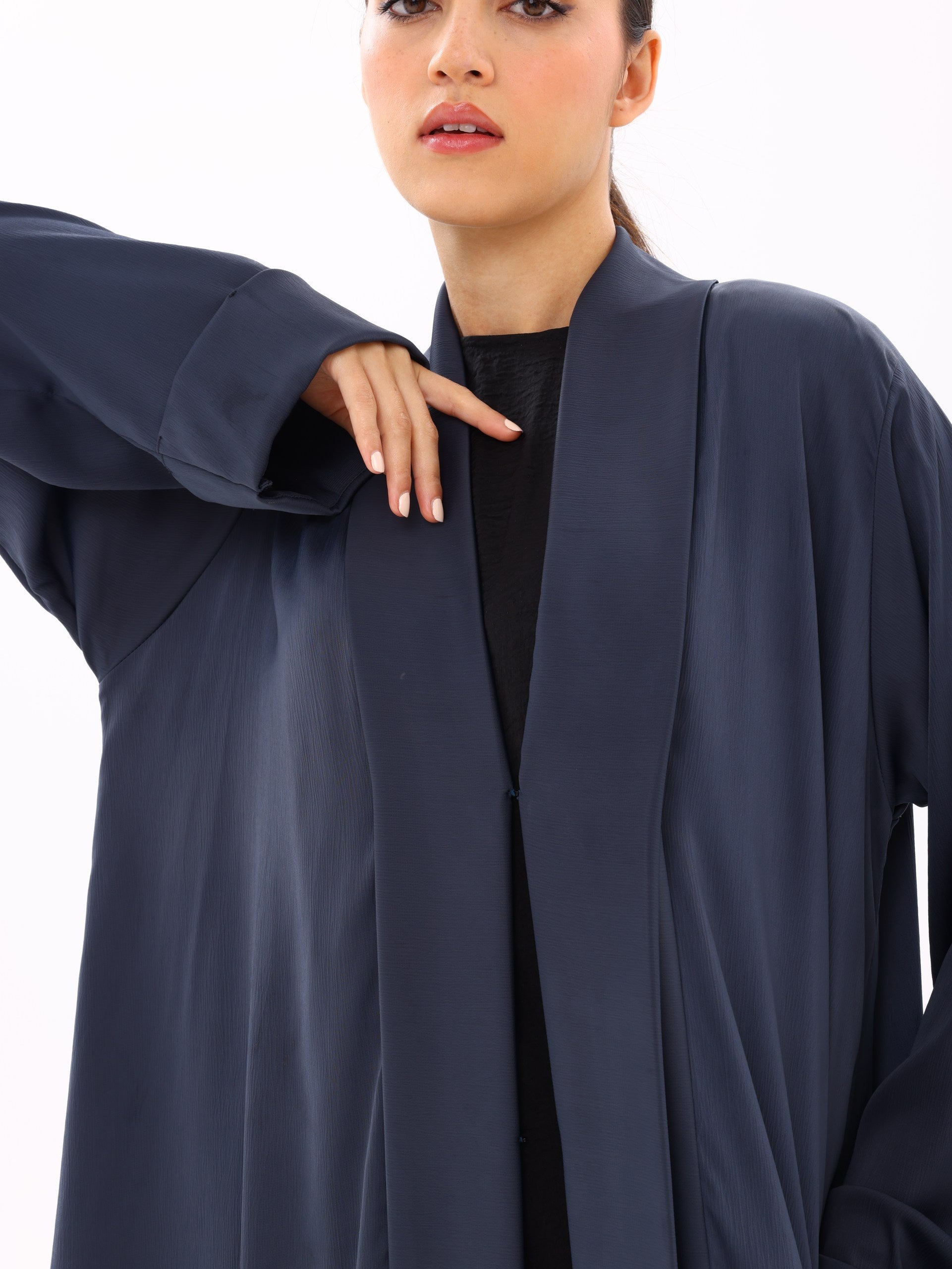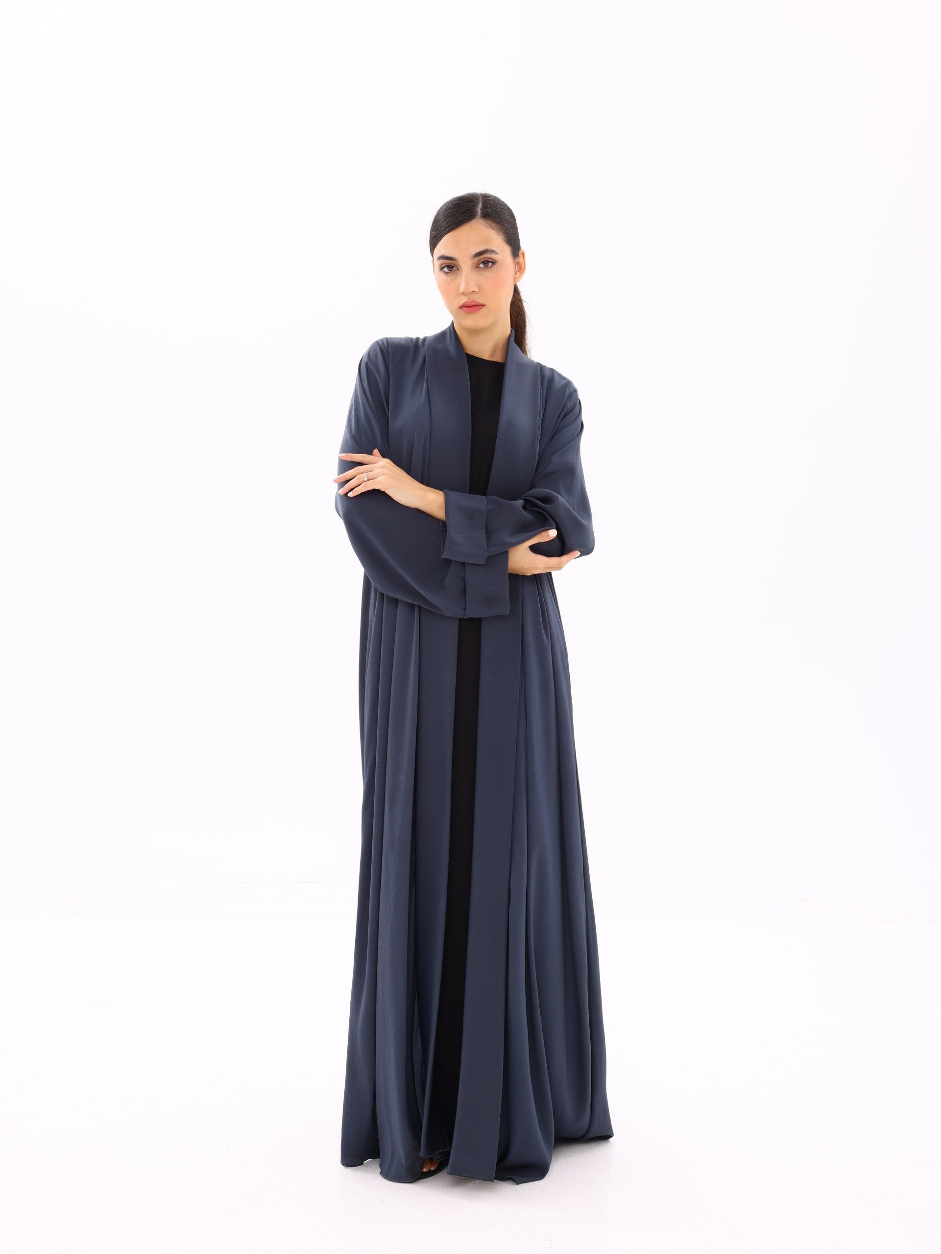 A fluid, lightweight open abaya designed for everyday elegance. Crafted to move effortlessly with the body, this piece drapes beautifully over any base layer—perfect for both refined daily wear and elevated occasions.
