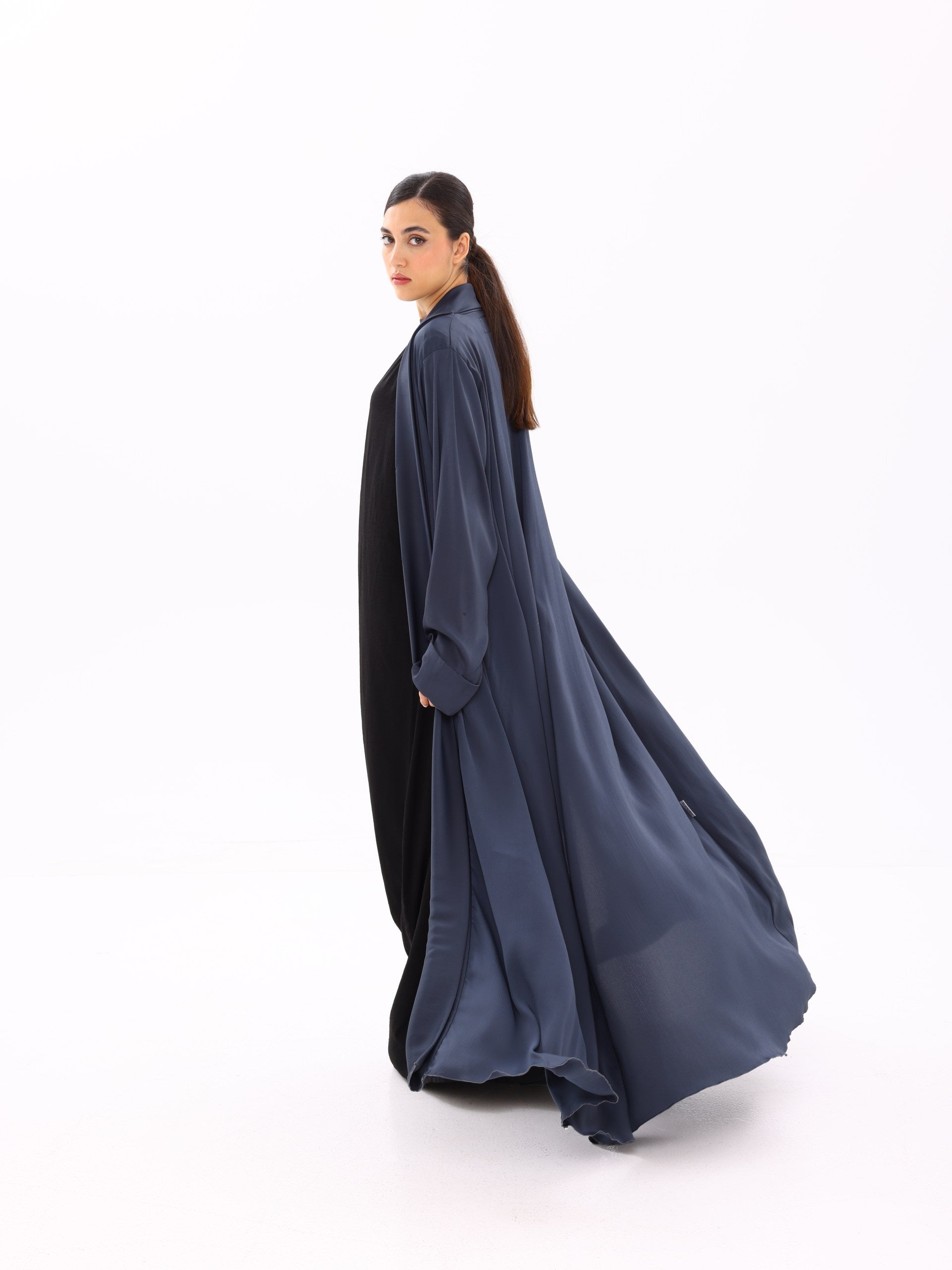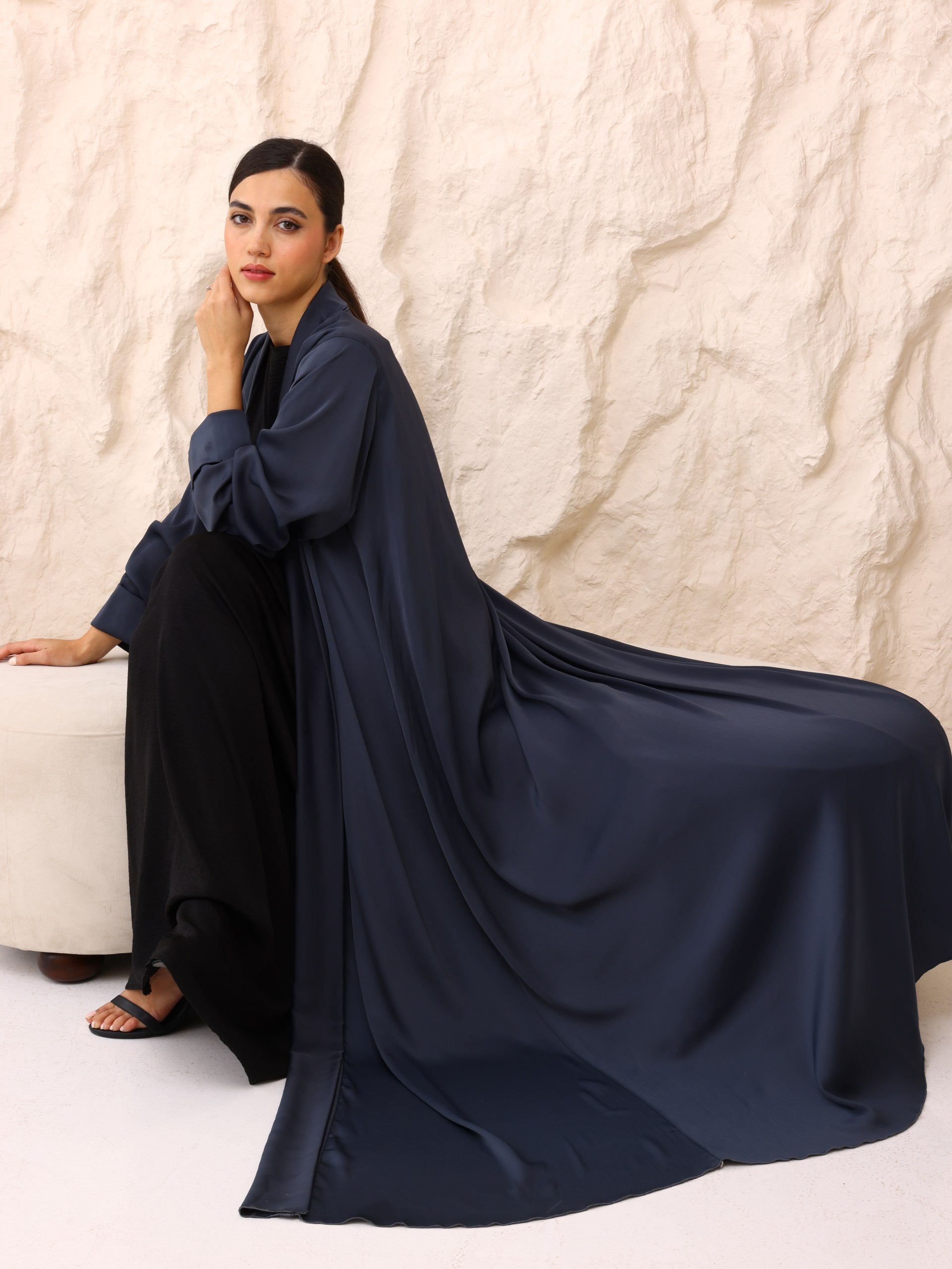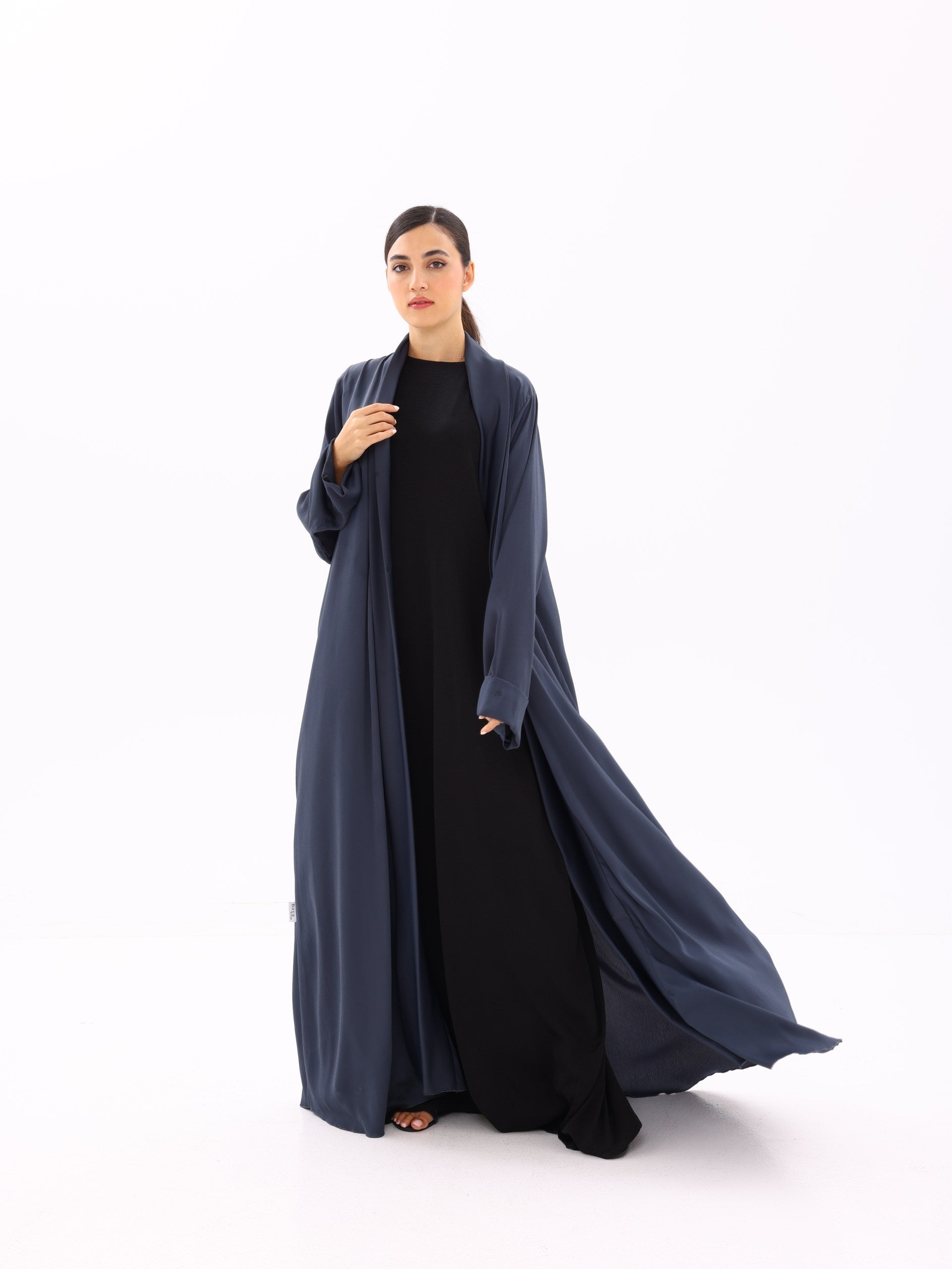 A fluid, lightweight open abaya designed for everyday elegance. Crafted to move effortlessly with the body, this piece drapes beautifully over any base layer—perfect for both refined daily wear and elevated occasions.
