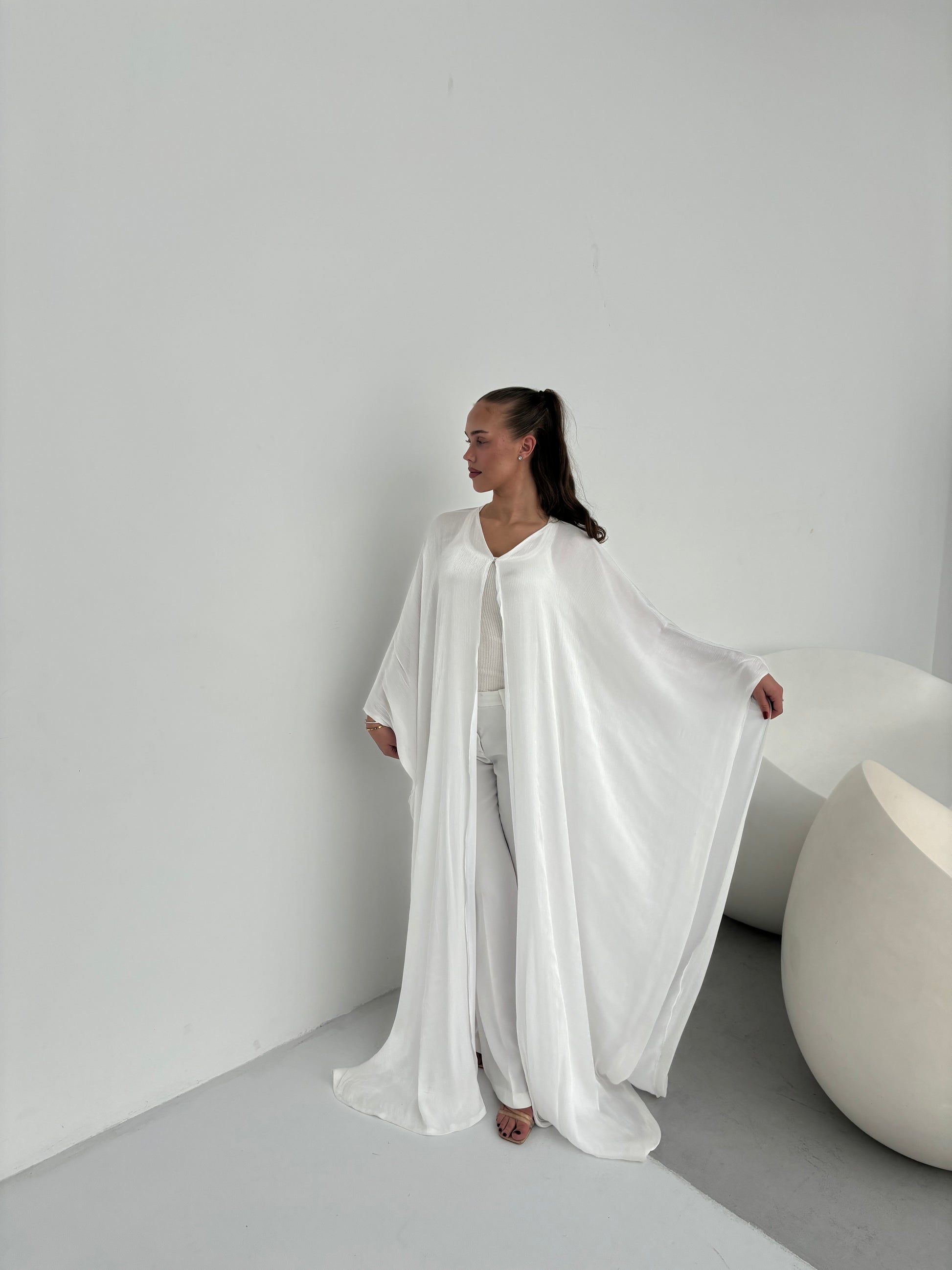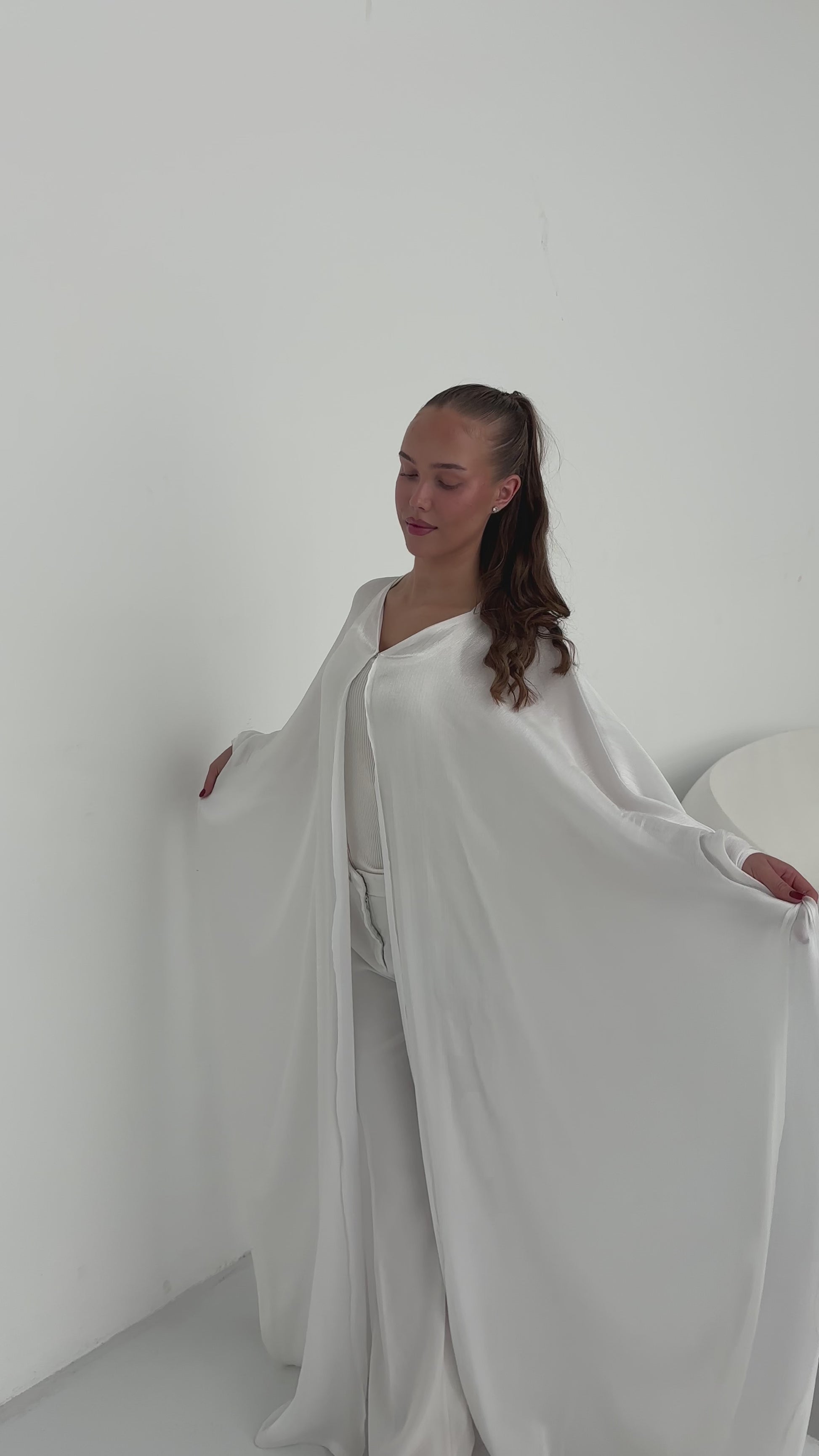 A thoughtfully designed flowing butterfly silhouette; with long sleeves that drape gracefully, suitable for both everyday wear and special occasions. Paired with premium chiffon sheila/scarf.