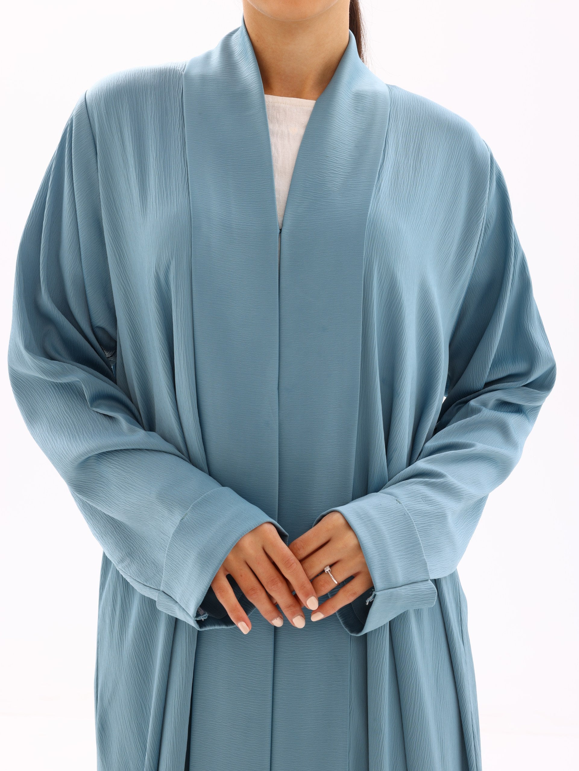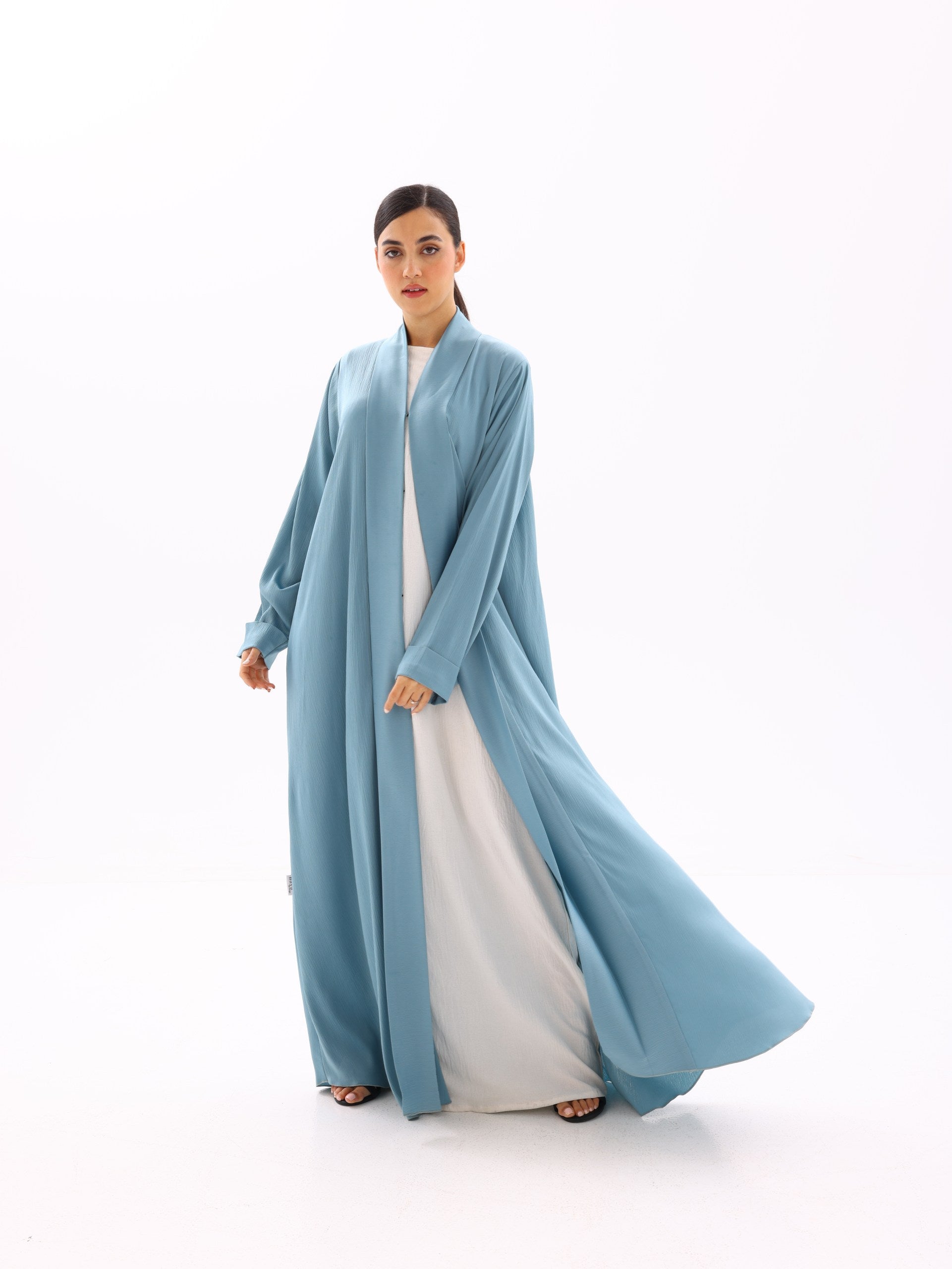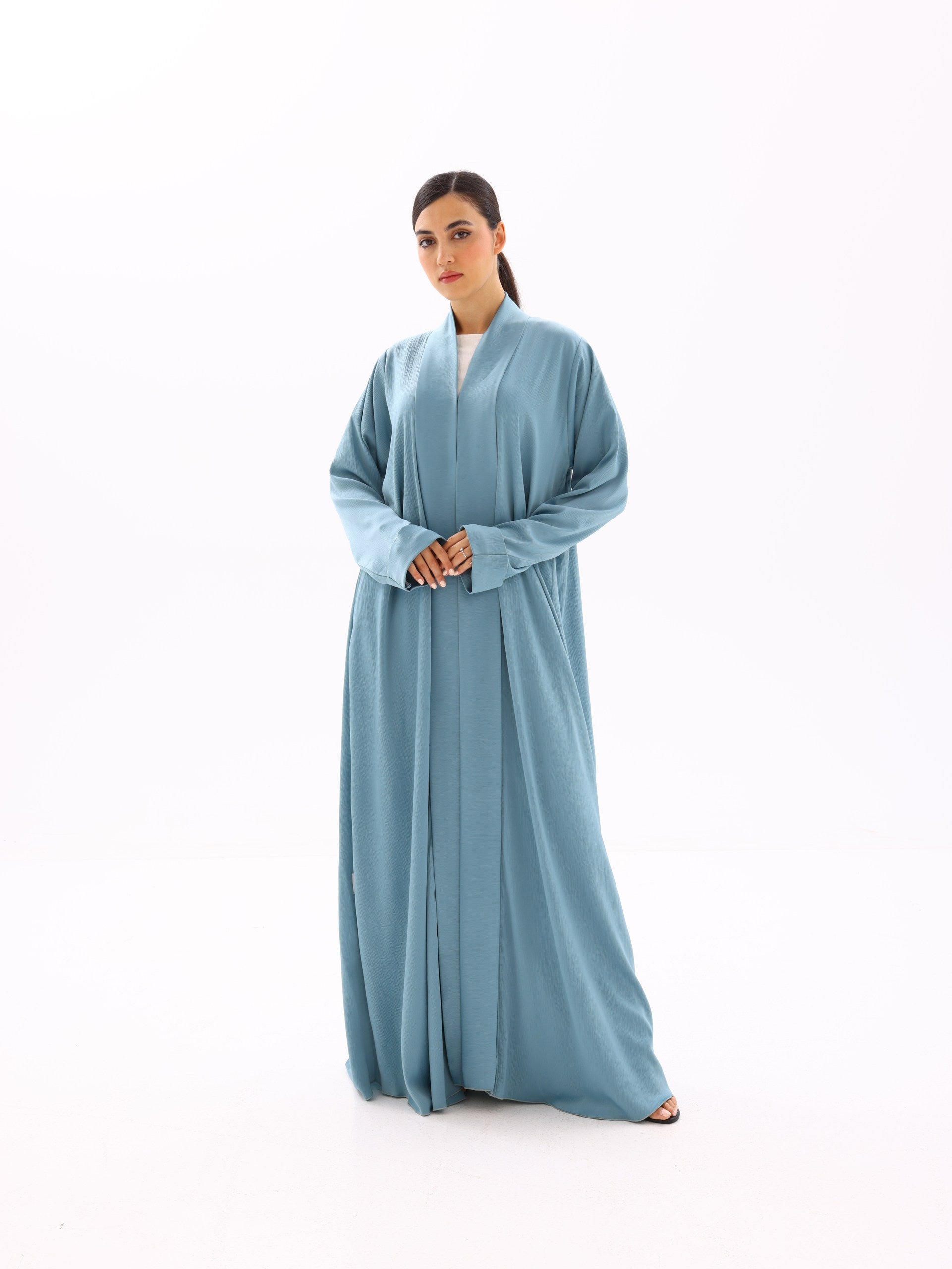 A fluid, lightweight open abaya designed for everyday elegance. Crafted to move effortlessly with the body, this piece drapes beautifully over any base layer—perfect for both refined daily wear and elevated occasions.